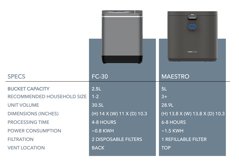 If you purchased a FoodCycler FC-30, you have the option to switch to refillable filters using their one-time conversion kit (FC-30 Refillable Carbon Filter) or conversion bundle that comes with over a year’s supply of carbon pellets.